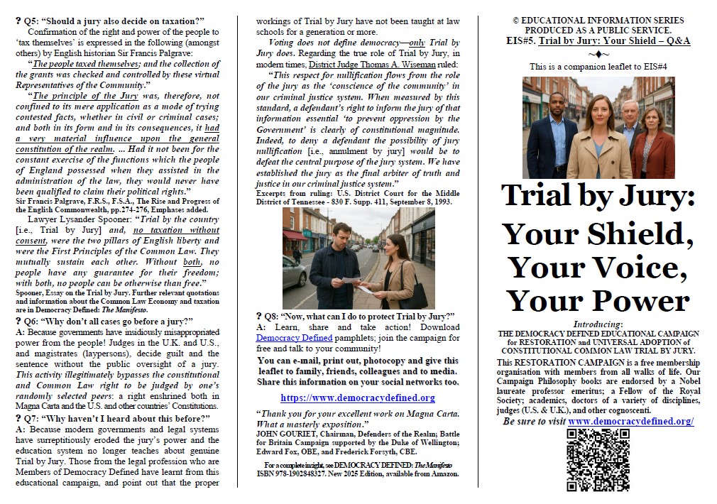 If the authentic Constitutional Common Law Trial by Jury were restored and functioning, there would be: no political prisoners; no innocent people in jail; no privately-owned banks involved in the issuance of national currency and credit; no interest on the same; no fictitious ‘National Debt’; no private-bank Fractional Reserve Lending (fraud); no common law Crime of Usury (money-lending-at-interest); and no involvement in illegal Wars of Aggression. (Just to begin with…)
